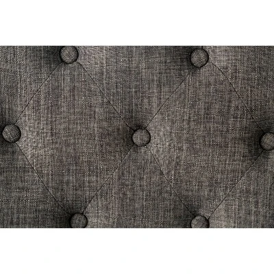 Rich and Rustic with a subtle contemporary flair, this set of two side chairs are a stylish dining room upgrade to accent any dining table style. The cozy, padded seats are covered in your color choice of soft linen-like fabric and adorned with decorative button tufting for a classic look. High rolled seat backs create an elegant profile and provide comfortable, stylish seating in your dining area.