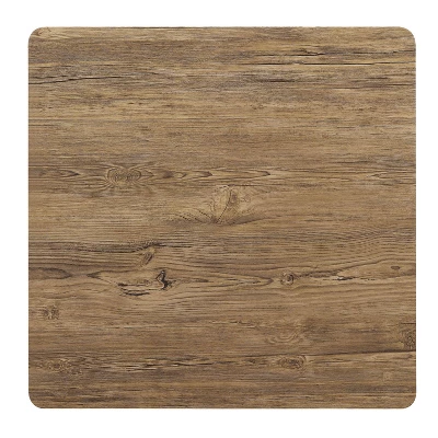 • Rounded square tabletop with triple bar metal legs