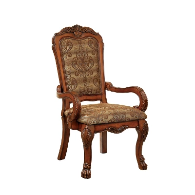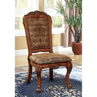 Homes: Inside + Out Bethsaida Elegant 9 Piece Dining Set in Antique Oak isn’t your typical dining set! Take sophistication to the next level with this grand, antique oak table; showcasing impressive, lion claw feet and intricate, floral carvings. If you thought the finishes were grand, wait until you put in the two 15-inch expandable leaves and see the expansive table top. Dine in absolute comfort with the padded seat cushions, upholstered in beautiful, patterned fabric upholstery. The Homes: Inside + Out Bethsaida Elegant 9 Piece Dining Set in Antique Oak will make hosting elegant parties easier than you could have ever known.