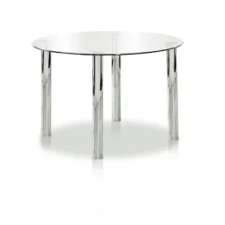 5pc Aneston Glass Top Chrome Leg Round Dining Table Set Chrome/Black – HOMES: Inside + Out