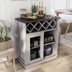 Alsco Buffet Server With Wine Rack Distressed Gray/ Light Oak – HOMES: Inside + Out