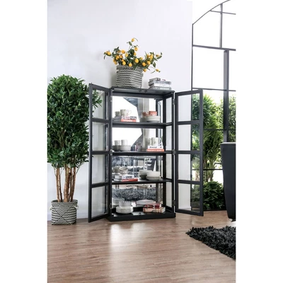 - Features 4 fixed shelves for decorative display of dishware, collectibles and more