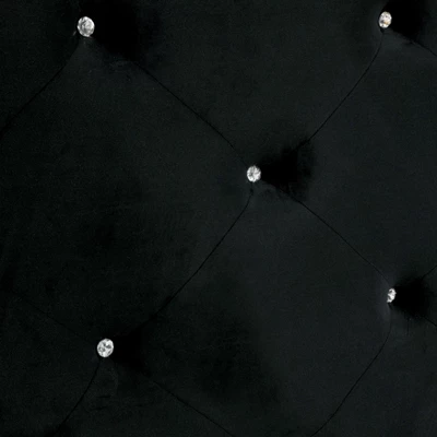 Give yourself the gift of ultimate luxury and comfort with this decadent Washington panel bed. A dual finish of black and white offers notable contrast. The shapely padded headboard, footboard, and sides all features a black glossy finish with glamorous mirrored accents. The Washington bed features a crown silhouette headboard upholstered in beautiful black velvet-like fabric upholstery with button tufting and regal post finials. This exquisite bed creates a definitive focal point in any stylish room.